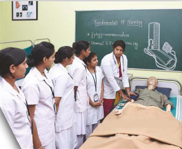 The Bachelor of Science in Nursing (B.Sc. Nursing) is a 4 years undergraduate medical programme. Nursing education is monitored by the Indian Nursing Council (INC), the programme focus on developing critical care, advanced thinking skills, proficiency and values necessary for the practice of professional nursing and midwifery. The programme prepares students to become responsible citizens by following a code of moral values and conduct at all times while fulfilling personal, social and professional responsibilities. B. Sc. Nursing programme involves classroom study, projects and assignments that enable students to gain practical knowledge of their learning. After the completion of the course, the students compulsorily need to do a six-month internship to experience real-world clinical settings and learn from them.